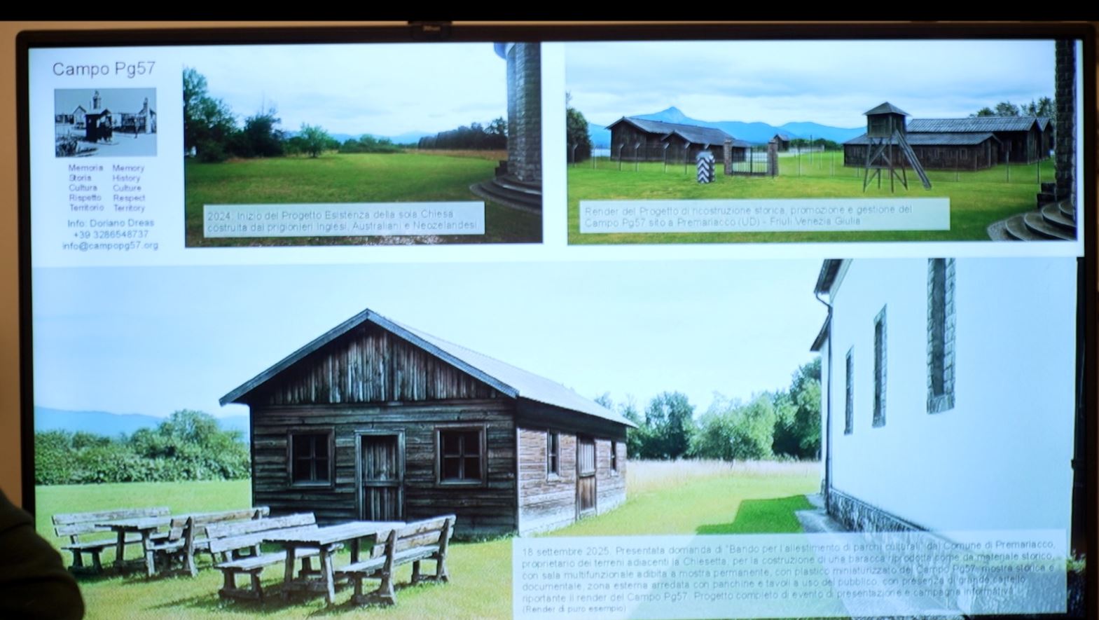 "Oggi - ha ribadito il vicegovernatore - iniziamo a vedere la concreta realizzazione del Progetto Campo Pg57 con il finanziamento del primo lotto che servirà a ricostruire una prima baracca del campo esattamente com'era nel periodo 1941-1943 quando la struttura è stata attiva".