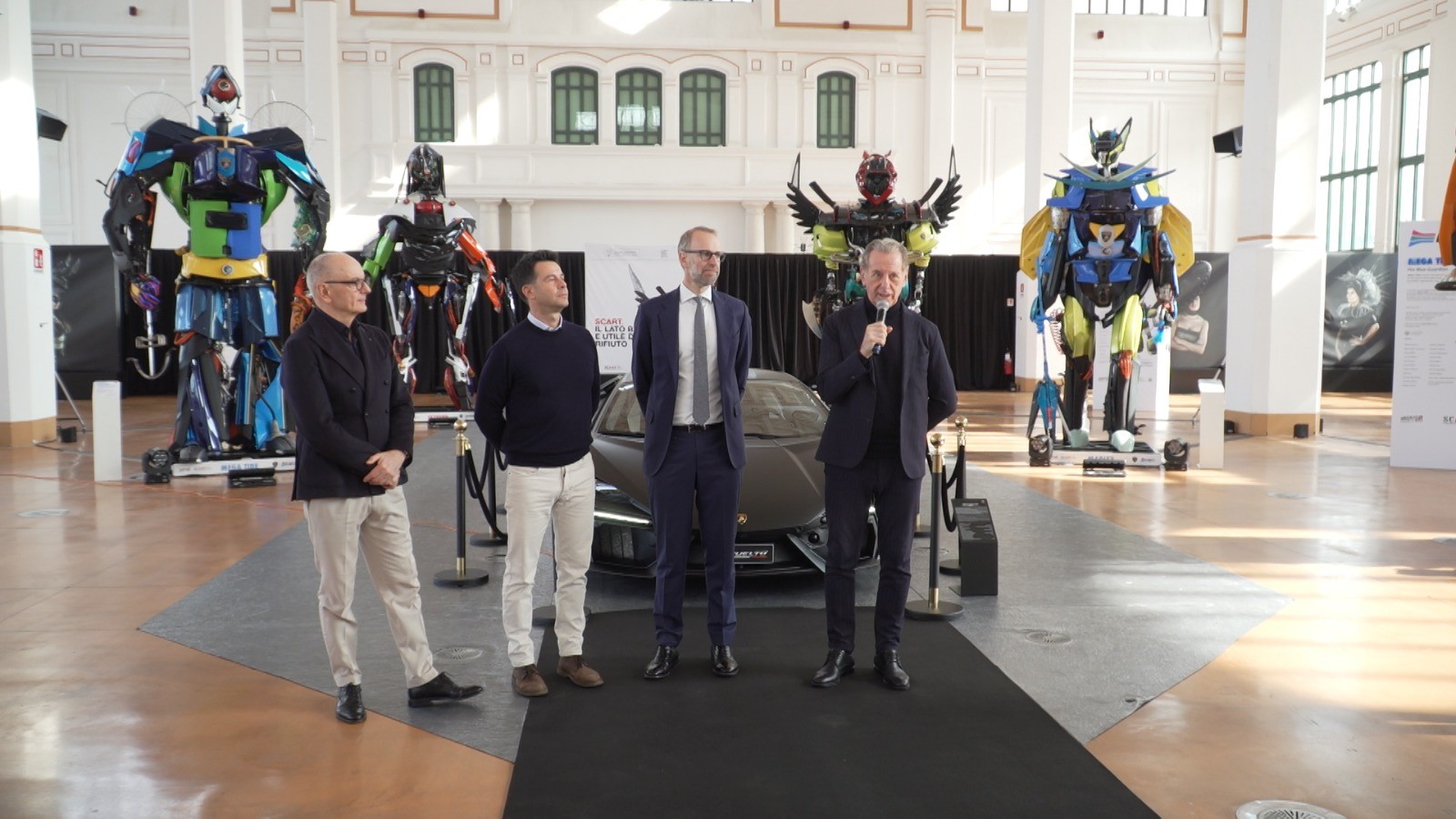 A completare la sezione, 16 fotografie firmate da Andrea Varani, che ritraggono modelle che indossano le creazioni Scart. La seconda sezione è composta da sei paladini dell'ambiente - sculture alte 450 cm realizzate con materiali di scarto provenienti dalle linee produttive di Automobili Lamborghini -, accompagnati da una supersportiva Lamborghini.