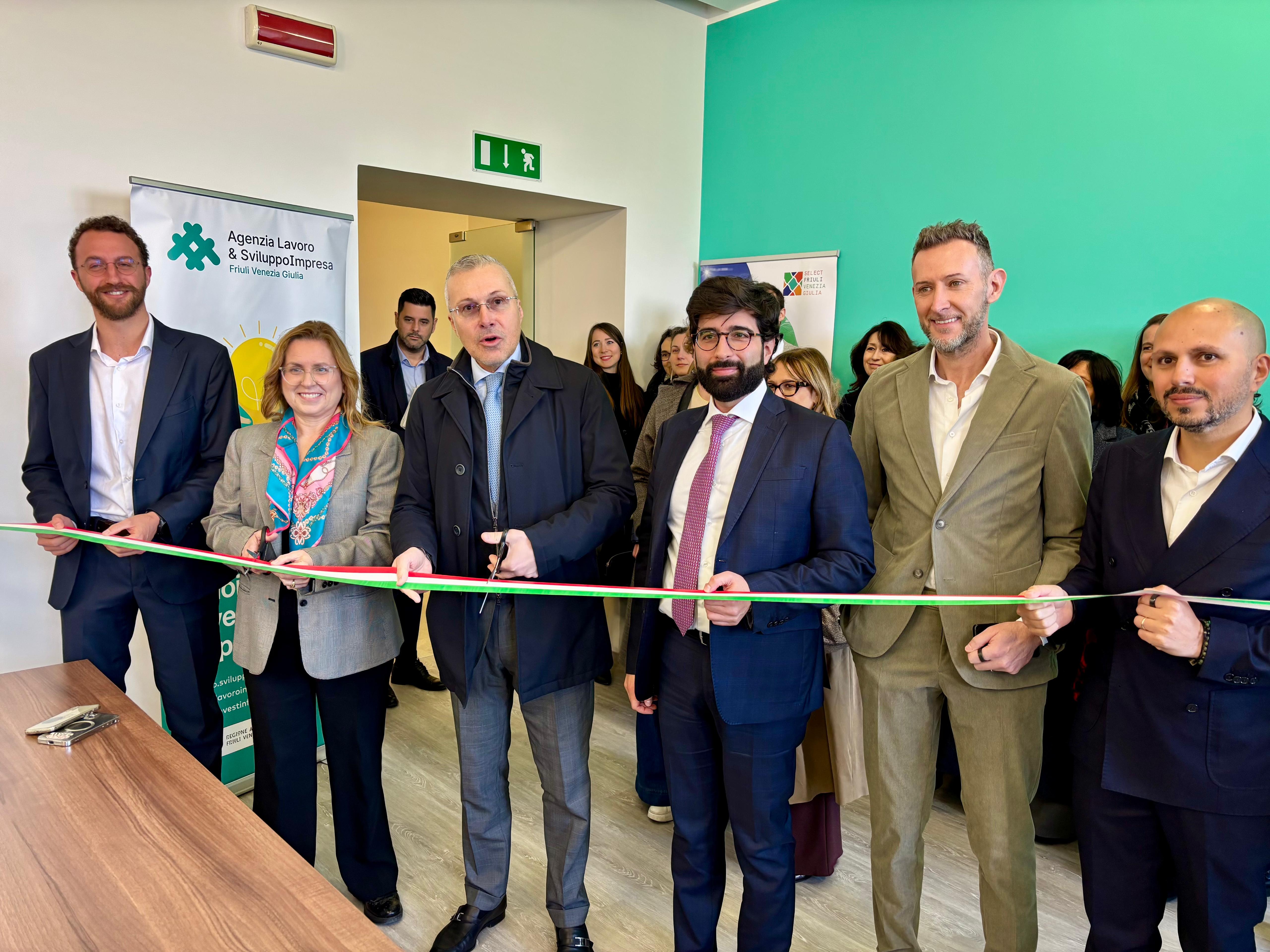 L’assessore regionale alle Attività produttive Sergio Emidio Bini al taglio del nastro dello spazio dell’Agenzia Select Friuli Venezia Giulia nel Palazzo della Regione in piazza Unità d’Italia